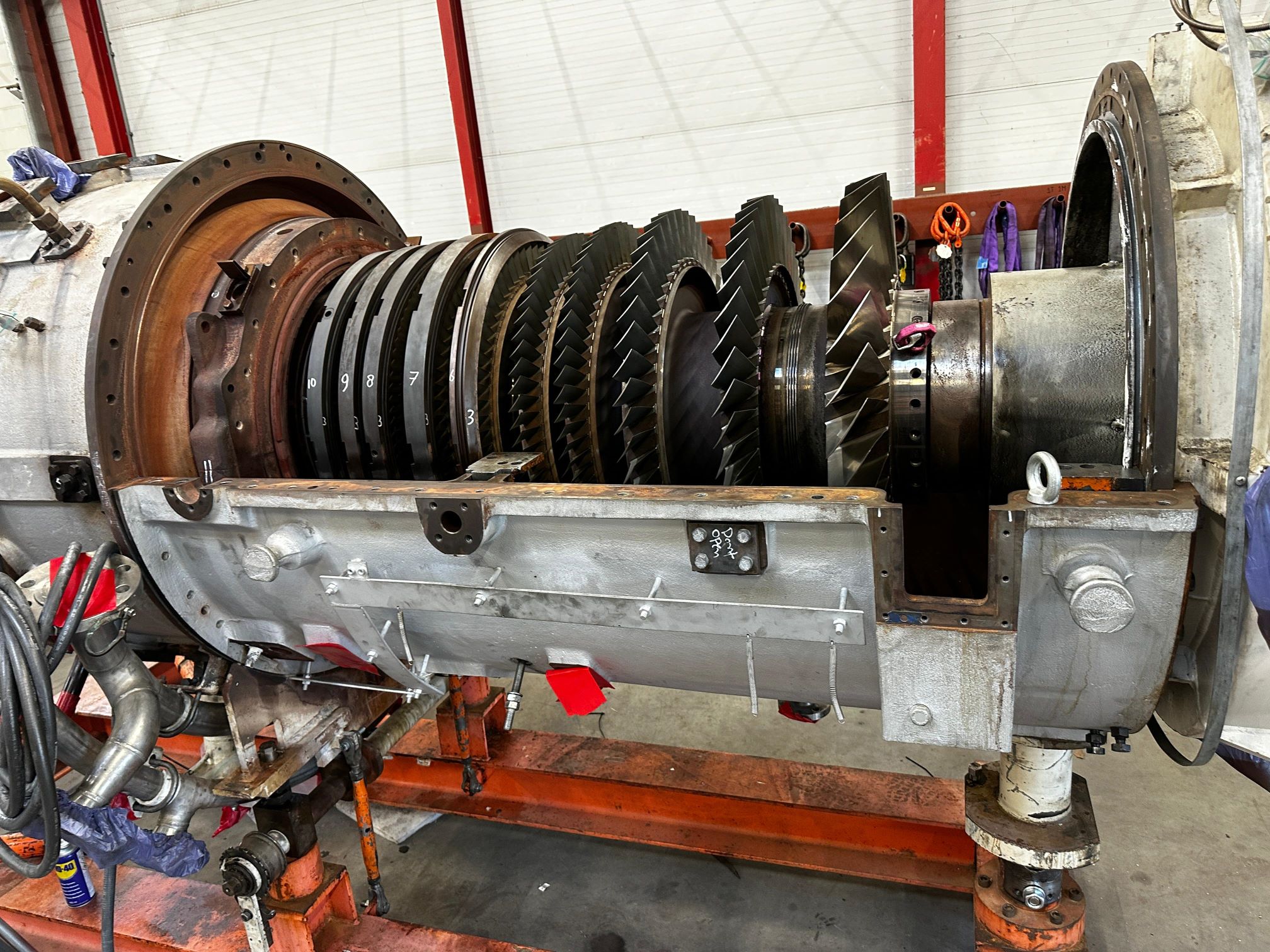 Four mechanics have rolled out the turbine on location and made ready for transport. In our workshop the gas turbine has been disassembled and parts have been inspected. Based on the maintenance plan and findings of the inspections, new parts have been ordered. The parts which will be used again are checked and cleaned.